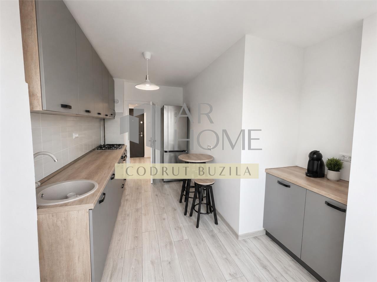 Se inchiriaza complet mobilat si utilat modern si dispune de: mașină de spălat vase, mașină de spălat rufe cu uscător, aragaz, hota , combina frigorifica , cuptor cu microunde, TV, aer conditionat, etc.