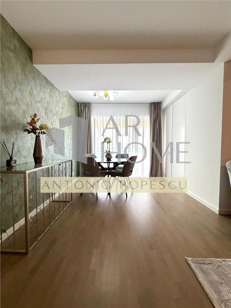 Dotari: video interfon, receptie, 3 lifturi, pompe de caldura si panouri fotovoltaice, usa intrare din lemn stratificat, usi interioare Filomuro din lemn stratificat, tamplarie PVC Salamander Bluevolution 92 cu geam tripan, incalzire in pardoseala cu termostat pe fiecare camera, racire prin pompe de caldura, parchet din lemn stratificat, tapet etc.