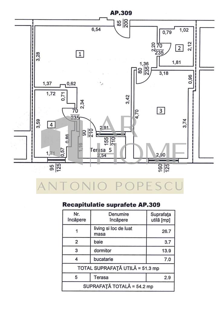 Suprafata utila: 54.2 mp