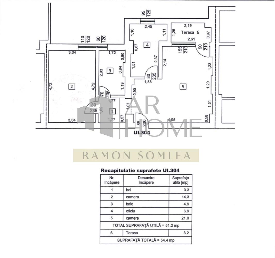 Apartamentul este la prima inchiriere si are o suprafata utila de 51,2 mp plus balcon de 3.2 mp.
