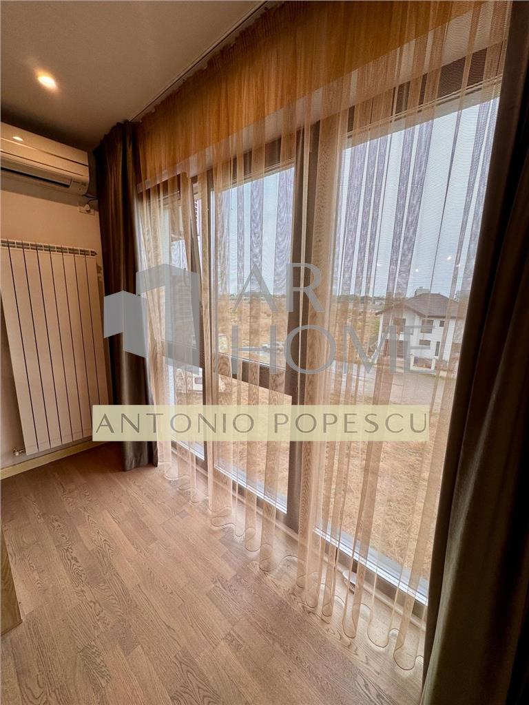 Dotari: teren imprejmuit cu gard si acces prin porti actionate electric, curte comuna, loc de parcare propriu, video interfon, usa intrare metalica Pinum, usi interioare lemn stratificat, tamplarie PVC Salamander Bluevolution 92 cu geam tripan, centrala termica proprie, calorifere din aluminiu pe elementi, ceramica Delta Studio, parchet din lemn stratificat, plinta din PVC, vopsea lavabila etc.