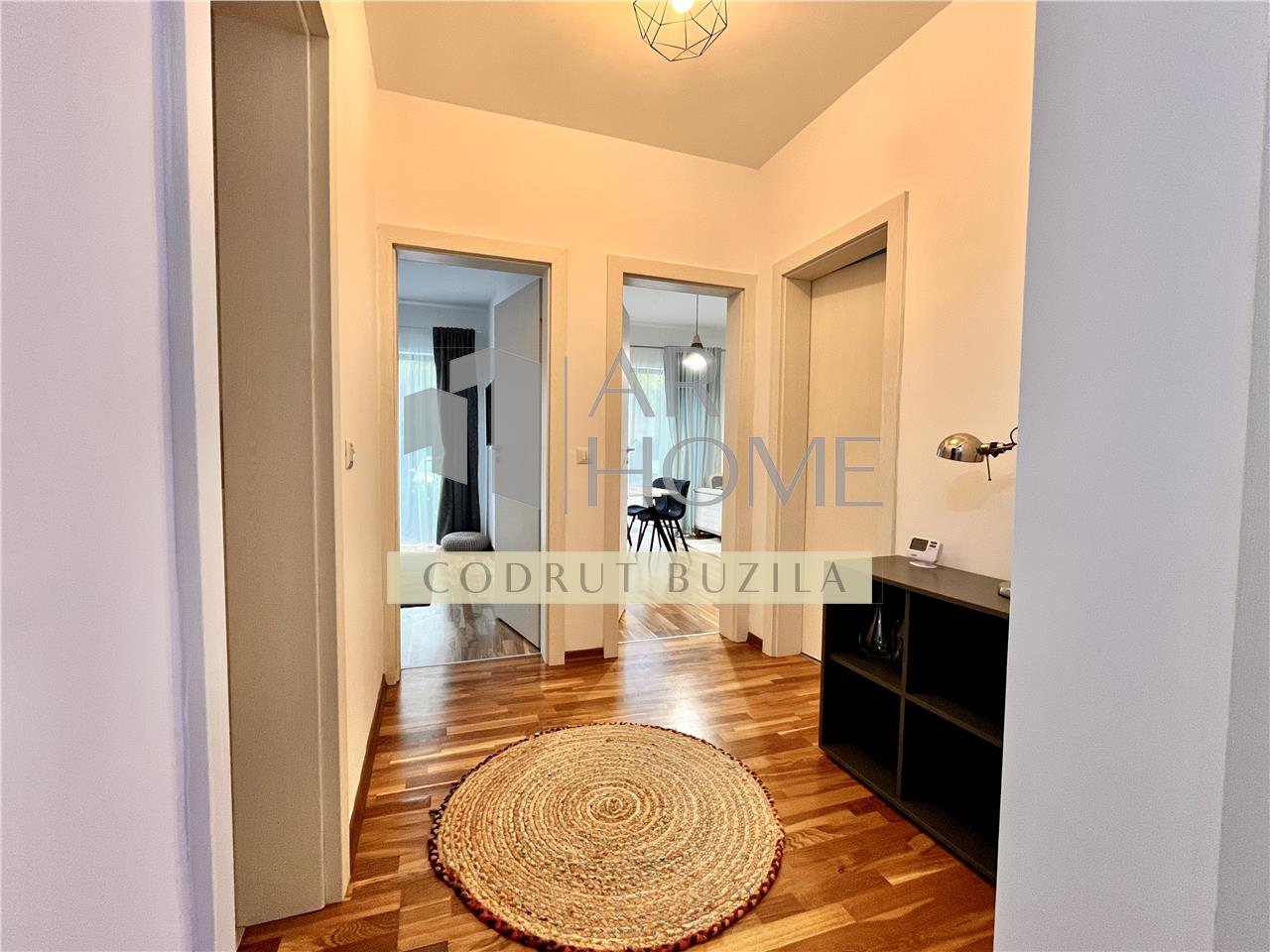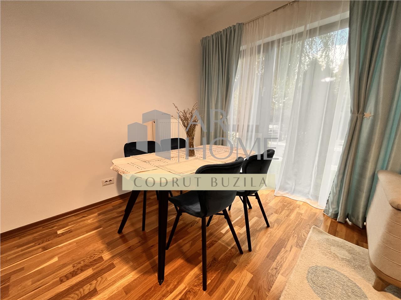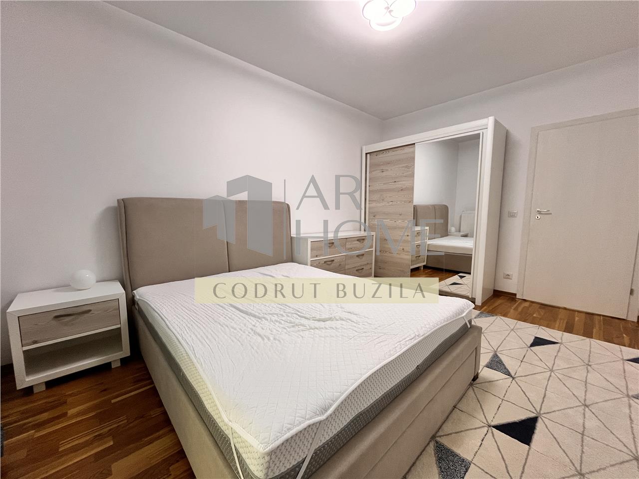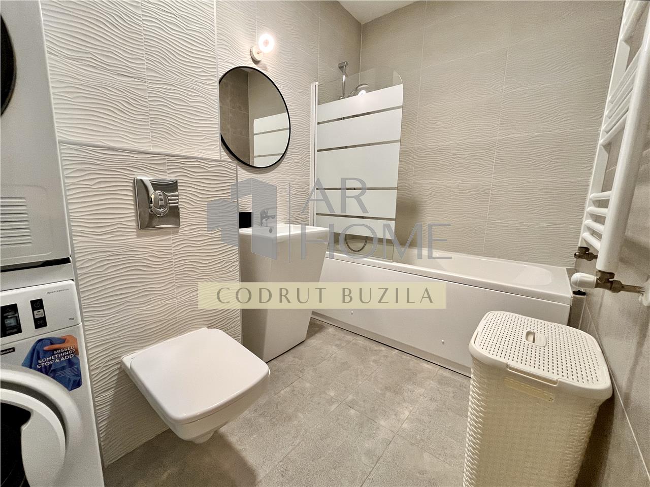 Apartamentul este mobilat complet si dotat cu masina de spalat rufe automata, uscator de rufe, masina de spalat vase, plita inductie, cuptor, hota, cuptor microunde, combina frigorifica, TV LED.