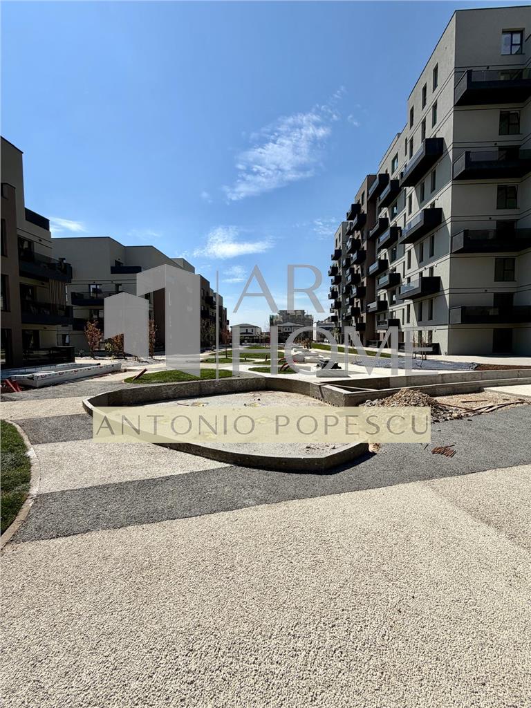 Ansamblul beneficiaza de teren imprejmuit cu gard si acces prin bariere actionate electric, spatii verzi generoase, alei pietonale, fantani ambientale, parcuri, gradini, 2 locuri de joaca pentru copii, spatii pentru relaxare, spatii comerciale etc.