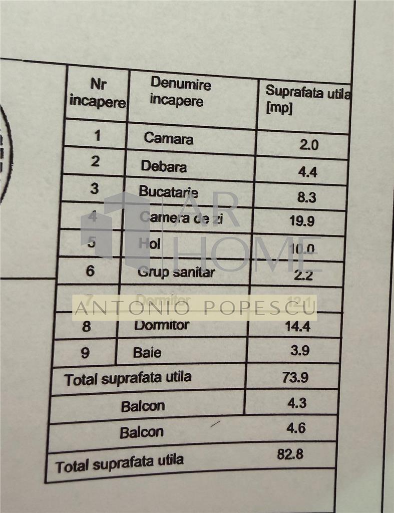 Are o suprafata utila de 73,9 mp plus 2 balcoane in suprafata utila de 8,9 mp si dispune de: locuri de parcare in jurul blcului, interfon, scara renovata, boxa proprie la subsolul blocului, 3 apartamente pe nivel cu spatiu de depozitare comun pentru fiecare etaj, usa intrare metalica, usi interioare celulare MDF, tamplarie PVC cu geam termopan, calorifere din aluminiu pe elementi, balcoane inchise in PVC, instalatia termica si electrica pe cupru, instalatia sanitara refacuta, sapa, peretii gletuiti plasa si vopsea lavabila, parchet din lemn triplu stratificat in dormitoare, gresie, faianta, plinta din PVC etc.