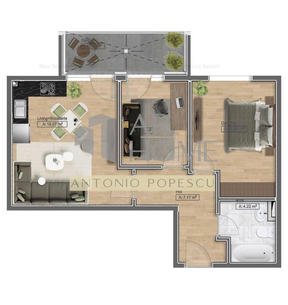 Apartamentul are o suprafata utila de 50,3 mp plus balcon in suprafata utila de 6,7 mp.
