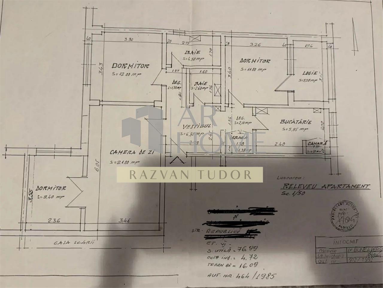 Vanzare apartament cu 4 camere, semi-decomandat, confort 1, situat pe str. Republicii, zona centrala , intr-un imobil construit in anul 1983 , situat la etajul 6 al unui bloc cu regim de inaltime P+8.