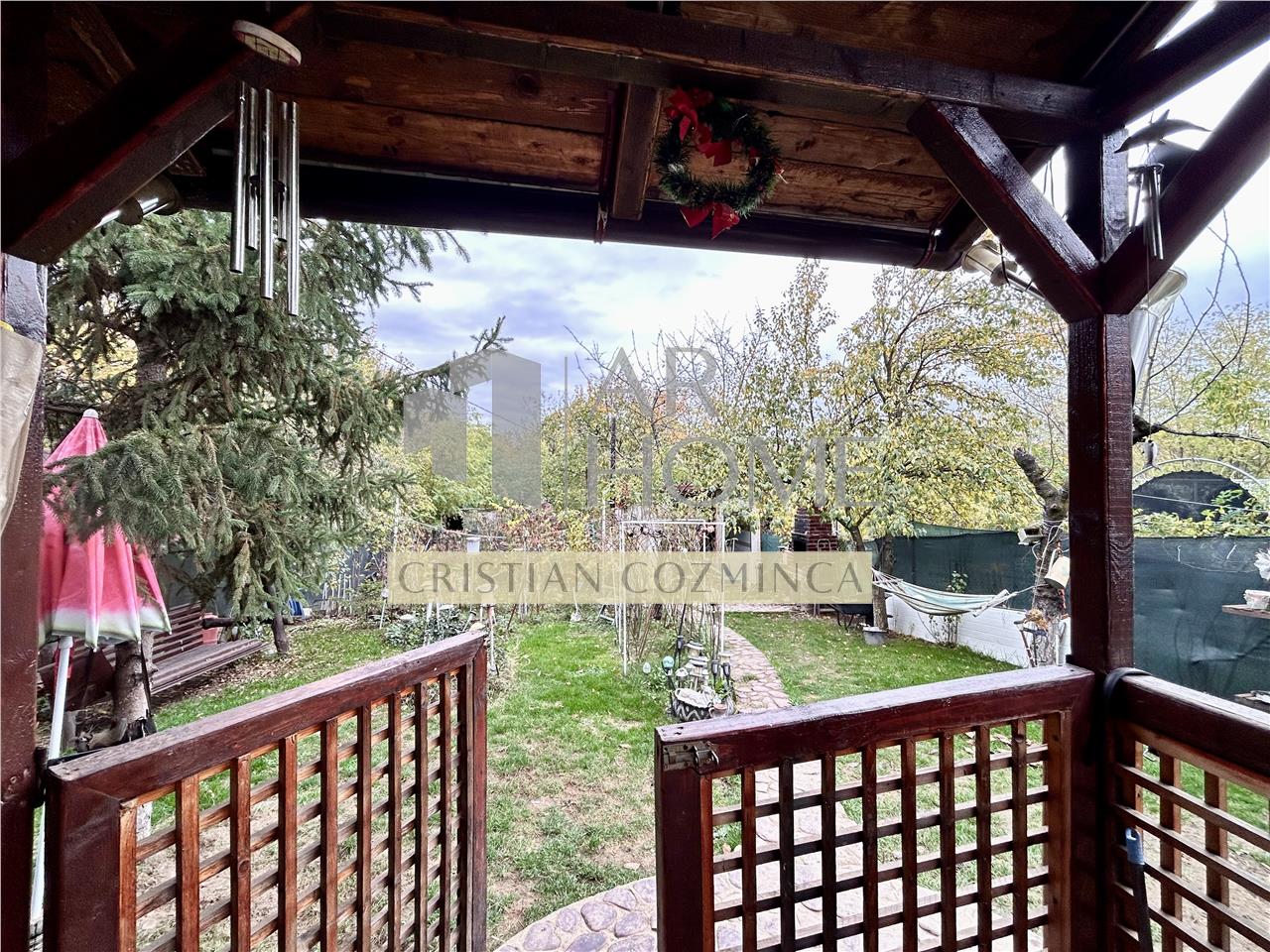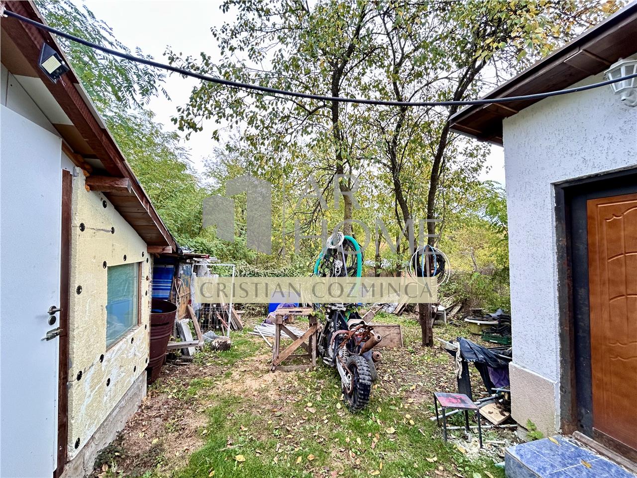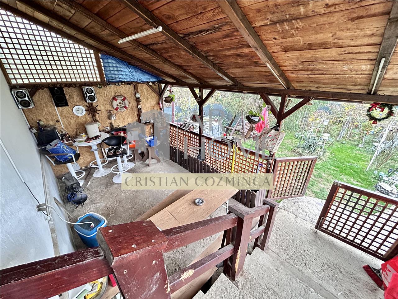 Dotari exterioare: izolatie termica, terasa spatioasa de 36 mp, anexe gospodaresti, curte imprejmuita.