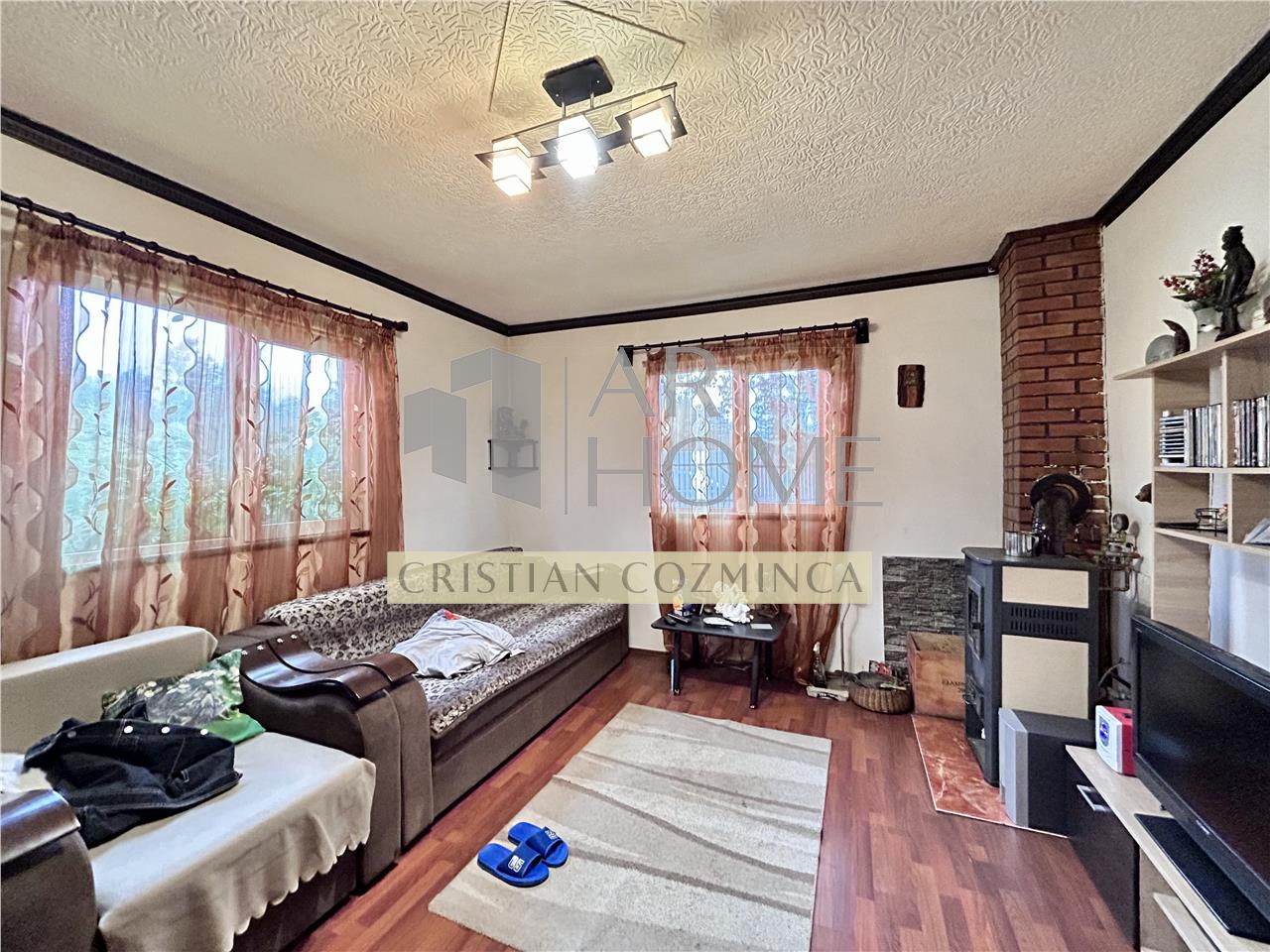 Dotari interioare: tamplarie PVC cu geam termopan, incalzire realizata cu centrala pe lemne, finisaje functionale, izolatie interioara cu vata minerala, spatii de depozitare multiple.