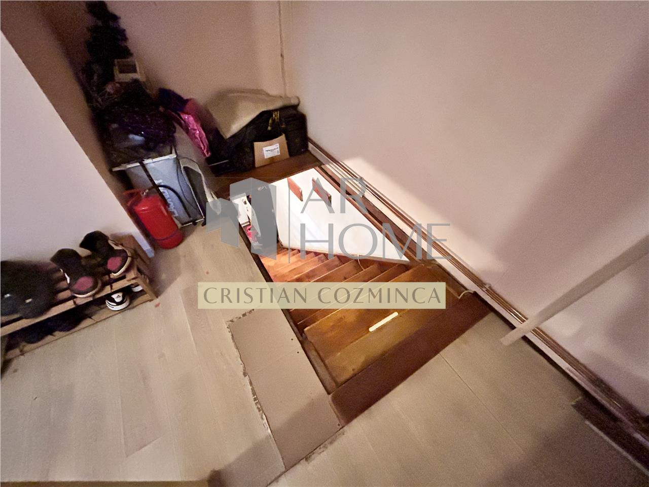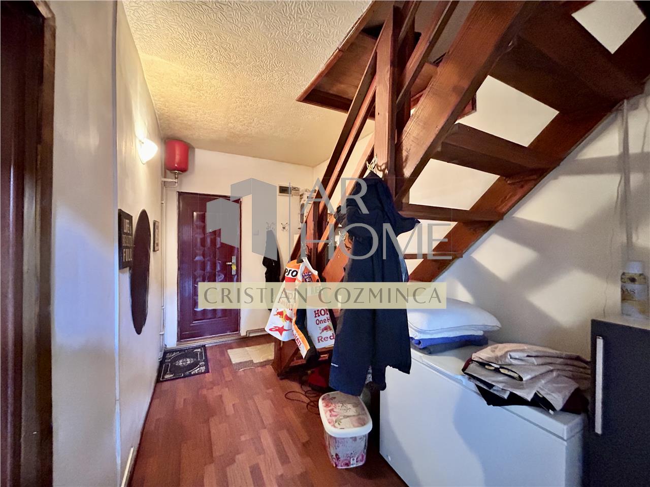 Parter: living, bucatarie, grup sanitar, zona de depozitare sub scara catre etaj;