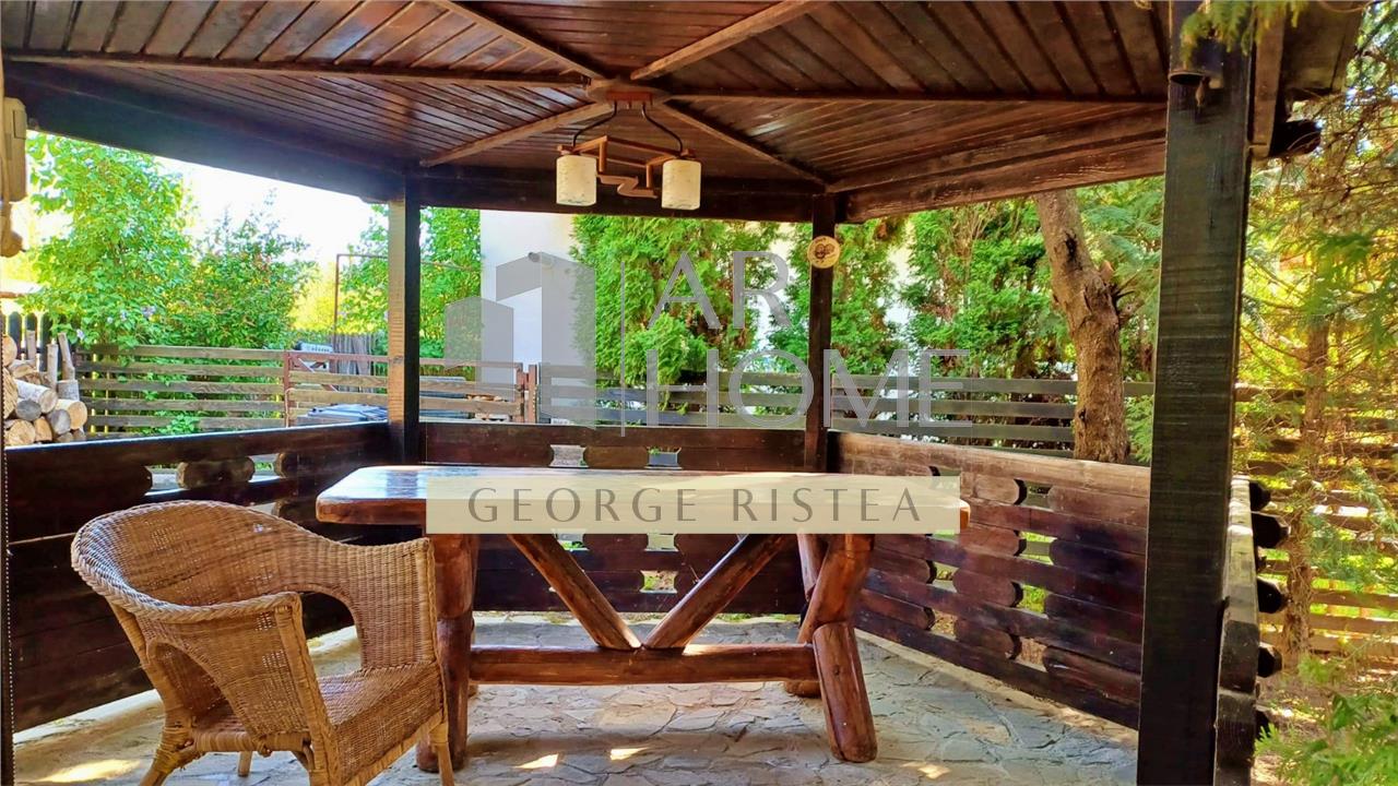 Foișor cu mobilier din lemn masiv, magazie din lemn