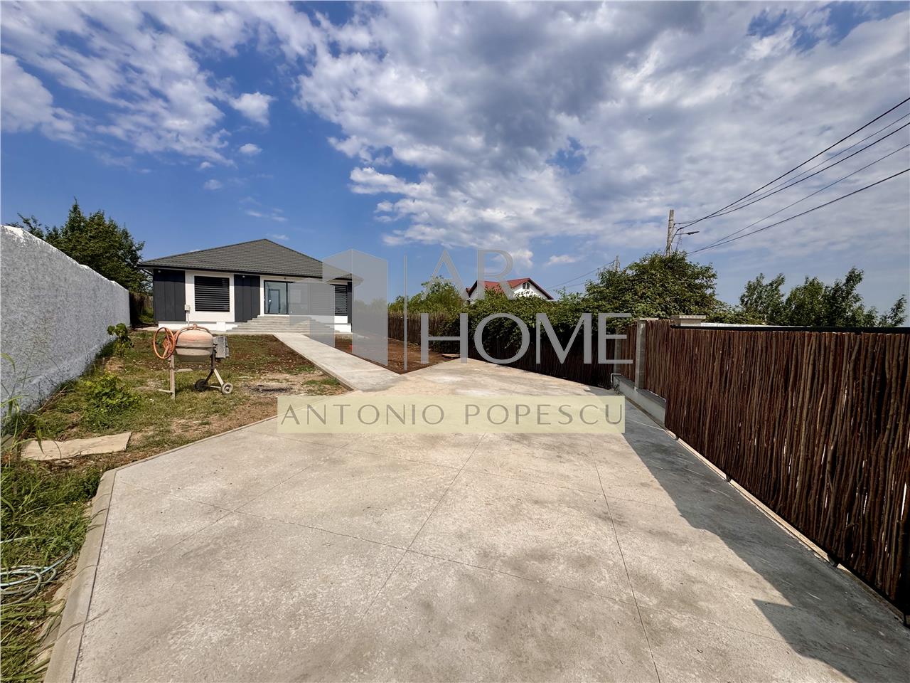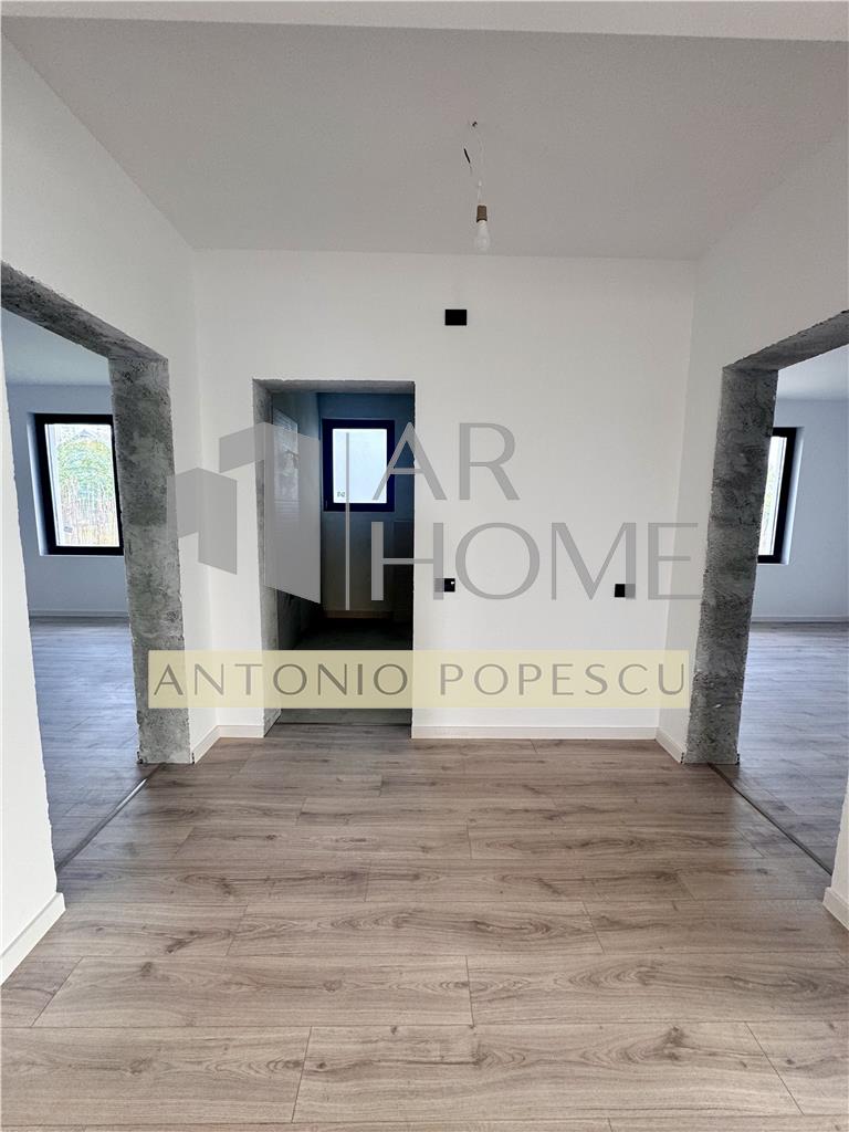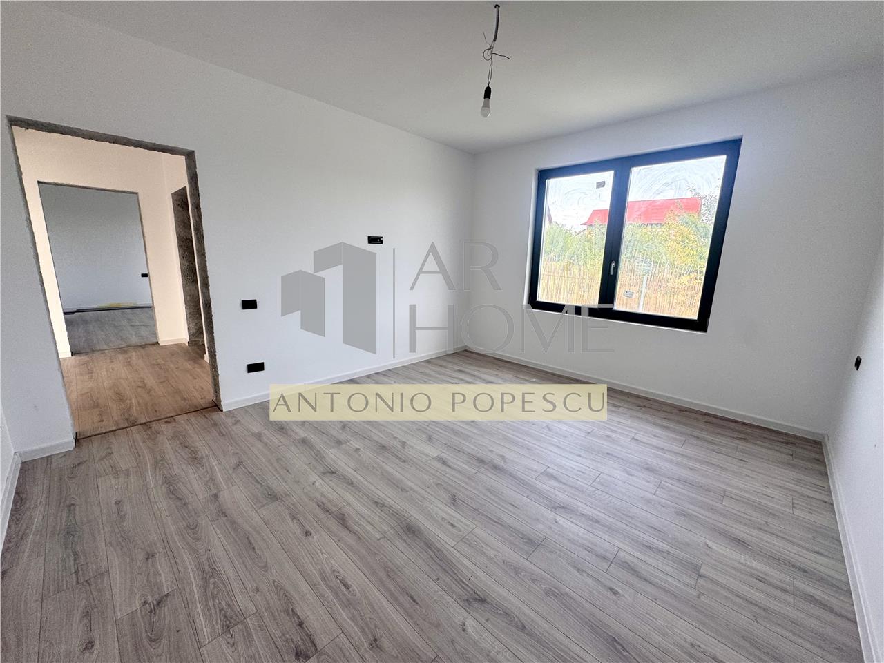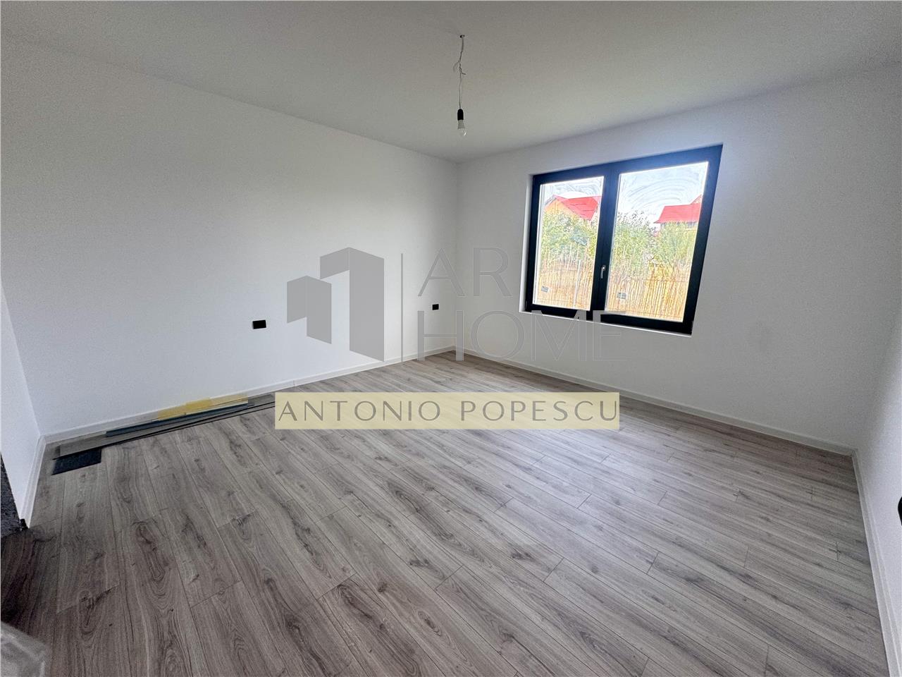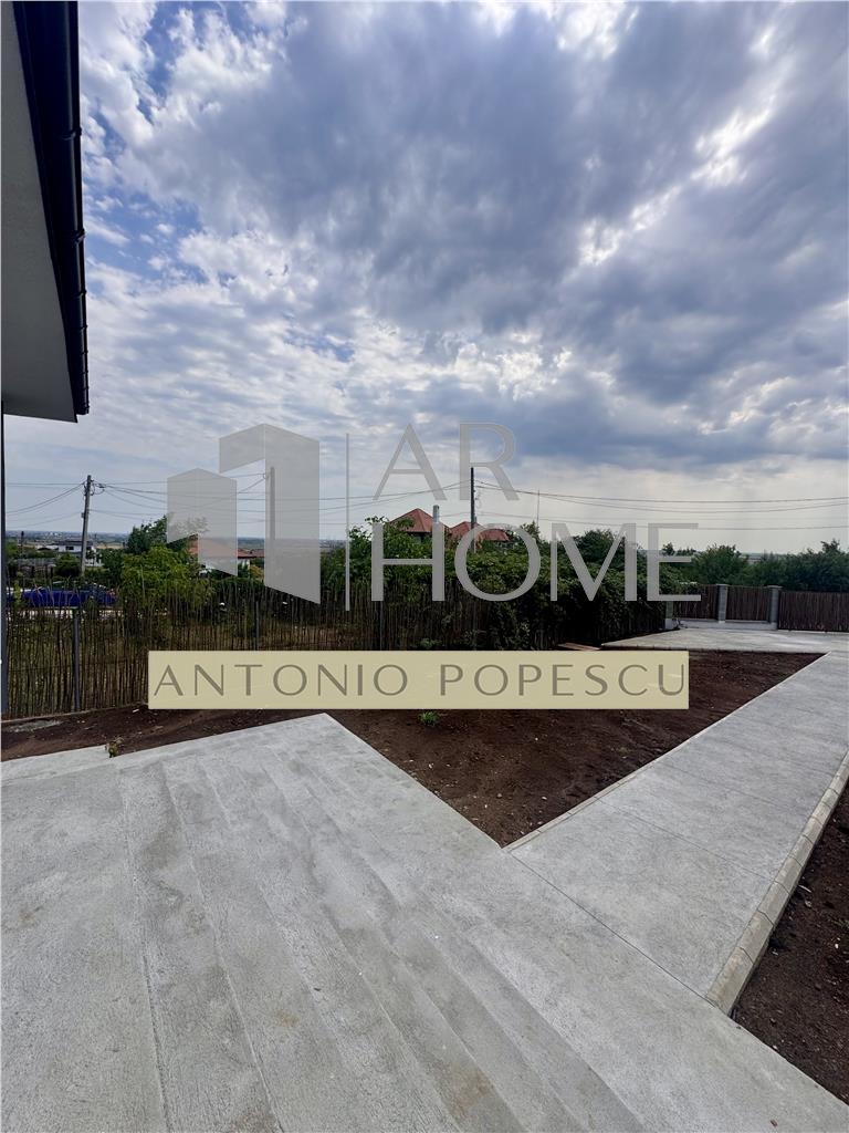 Dotari: 2 locuri de parcare amenajate in exteriorul curtii, teren imprejmuit cu gard, alei auto si pietonale betonate, pamant vegetal, usa intrare PVC Salamander Bluevolution 92, terasa inchisa in aluminiu glisant si PVC, tamplarie PVC Salamander Bluevolution 92 cu geam tripan, centrala termica proprie pe gaz, incalzire in pardoseala cu 2 distribuitoare de caldura, instalatia de apa pe PPR verde cu insertie de aluminiu, gresie si faianta in bai, parchet laminat de trafic intens, plinta din PVC, vopsea lavabila, prize si intrerupatoare etc.