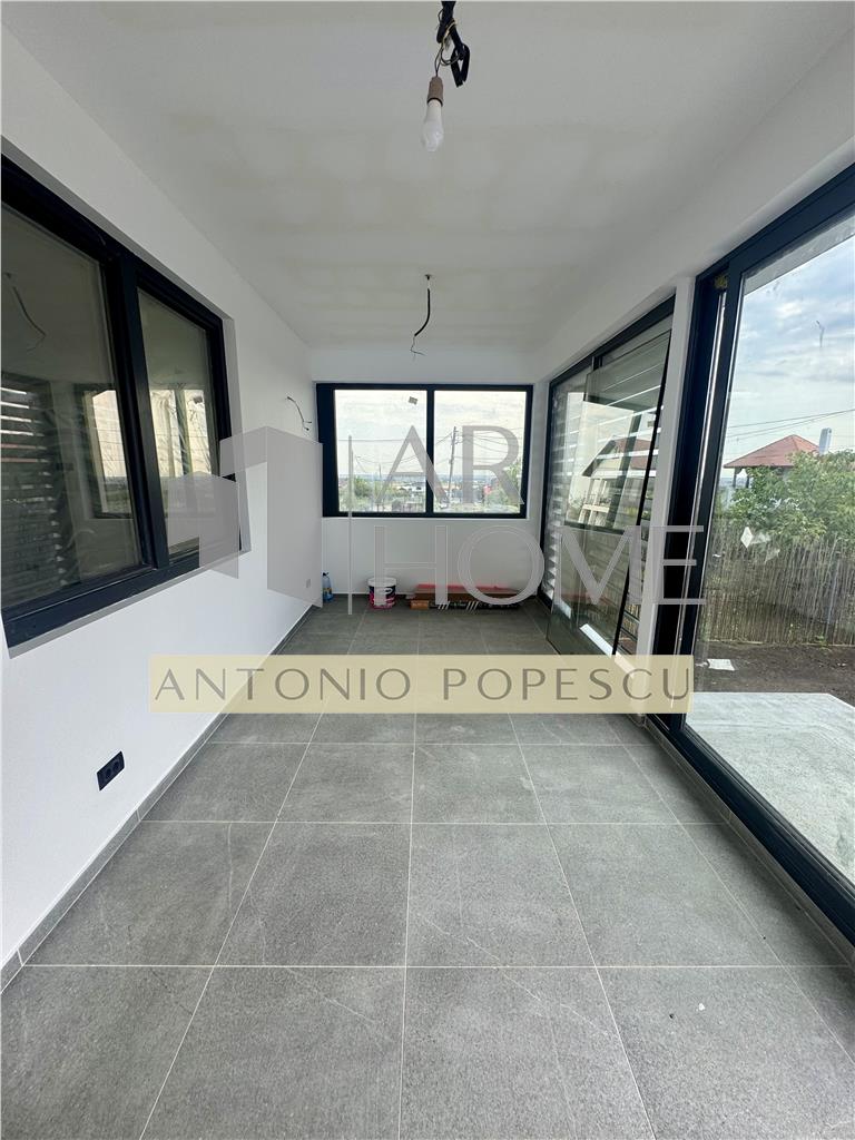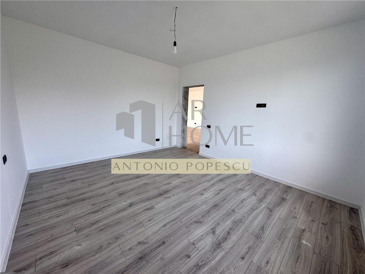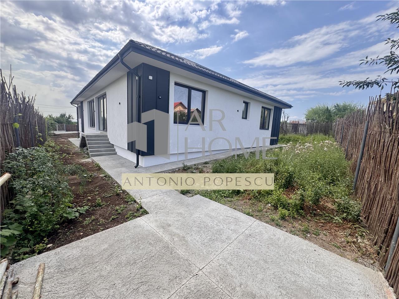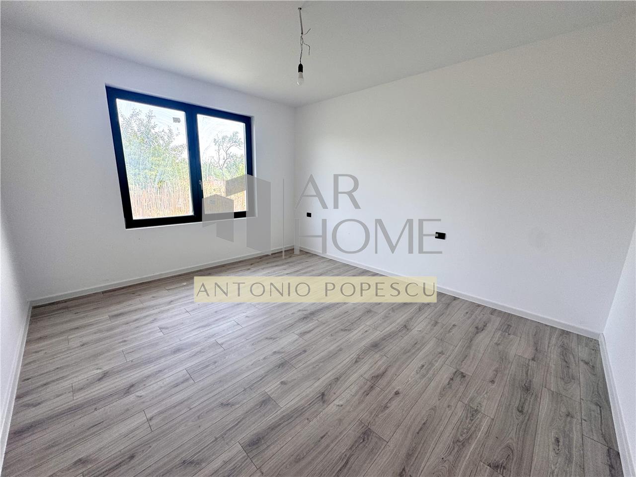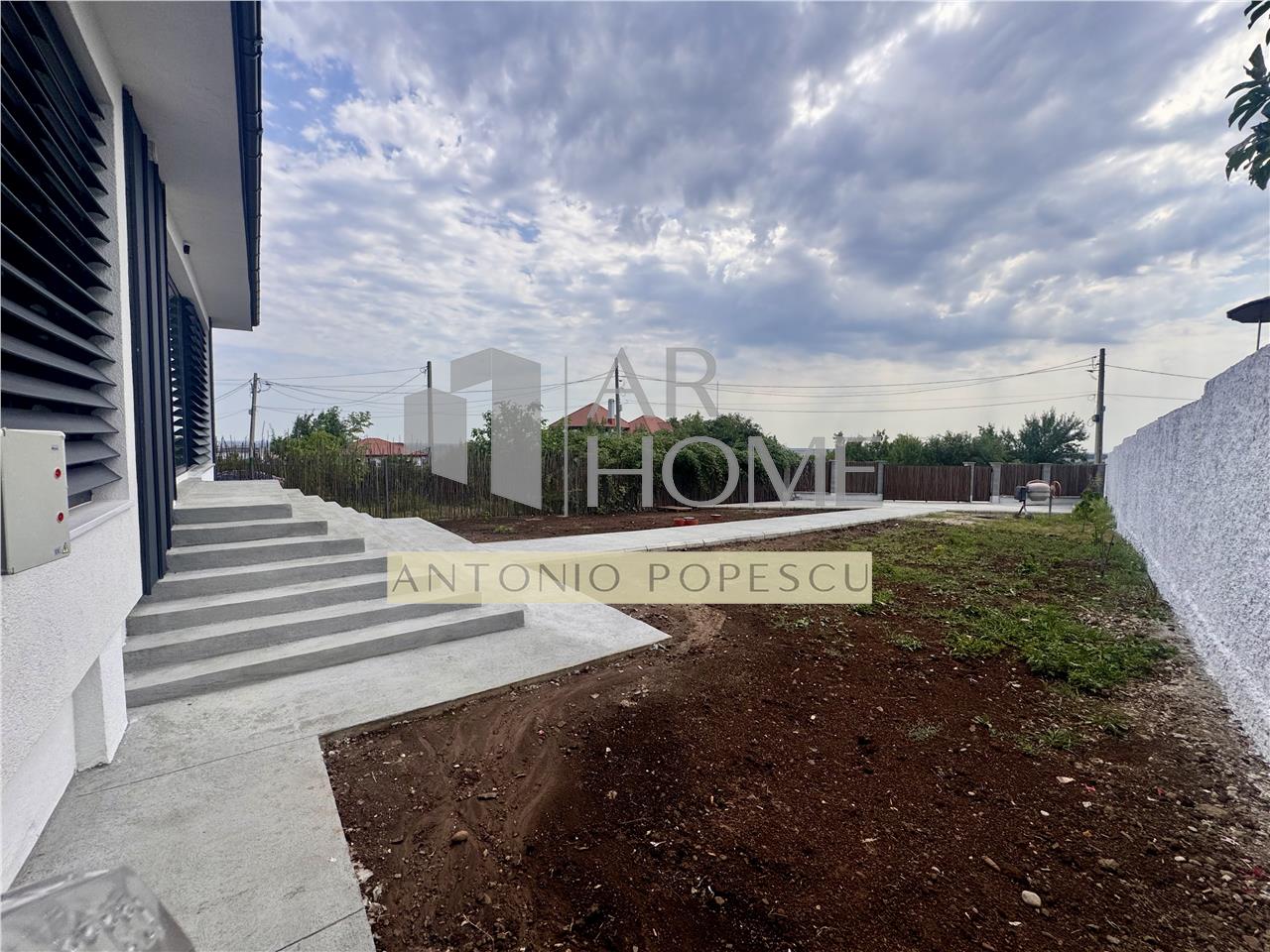 Dotari: 2 locuri de parcare amenajate in exteriorul curtii, teren imprejmuit cu gard, alei auto si pietonale betonate, pamant vegetal, usa intrare PVC Salamander Bluevolution 92, terasa inchisa in aluminiu glisant si PVC, tamplarie PVC Salamander Bluevolution 92 cu geam tripan, centrala termica proprie pe gaz, incalzire in pardoseala cu 2 distribuitoare de caldura, instalatia de apa pe PPR verde cu insertie de aluminiu, gresie si faianta in bai, parchet laminat de trafic intens, plinta din PVC, vopsea lavabila, prize si intrerupatoare etc.