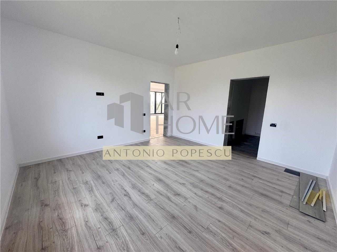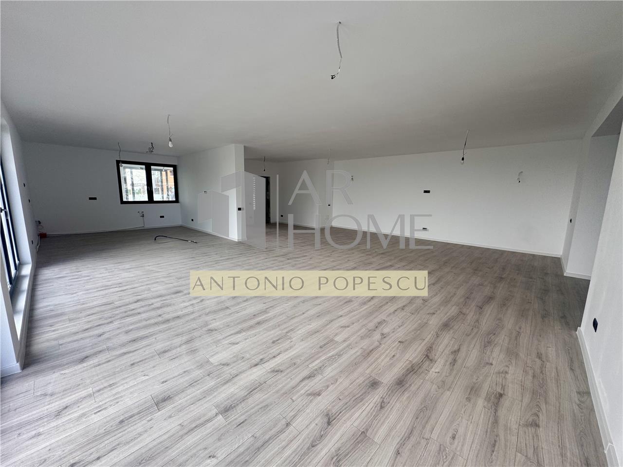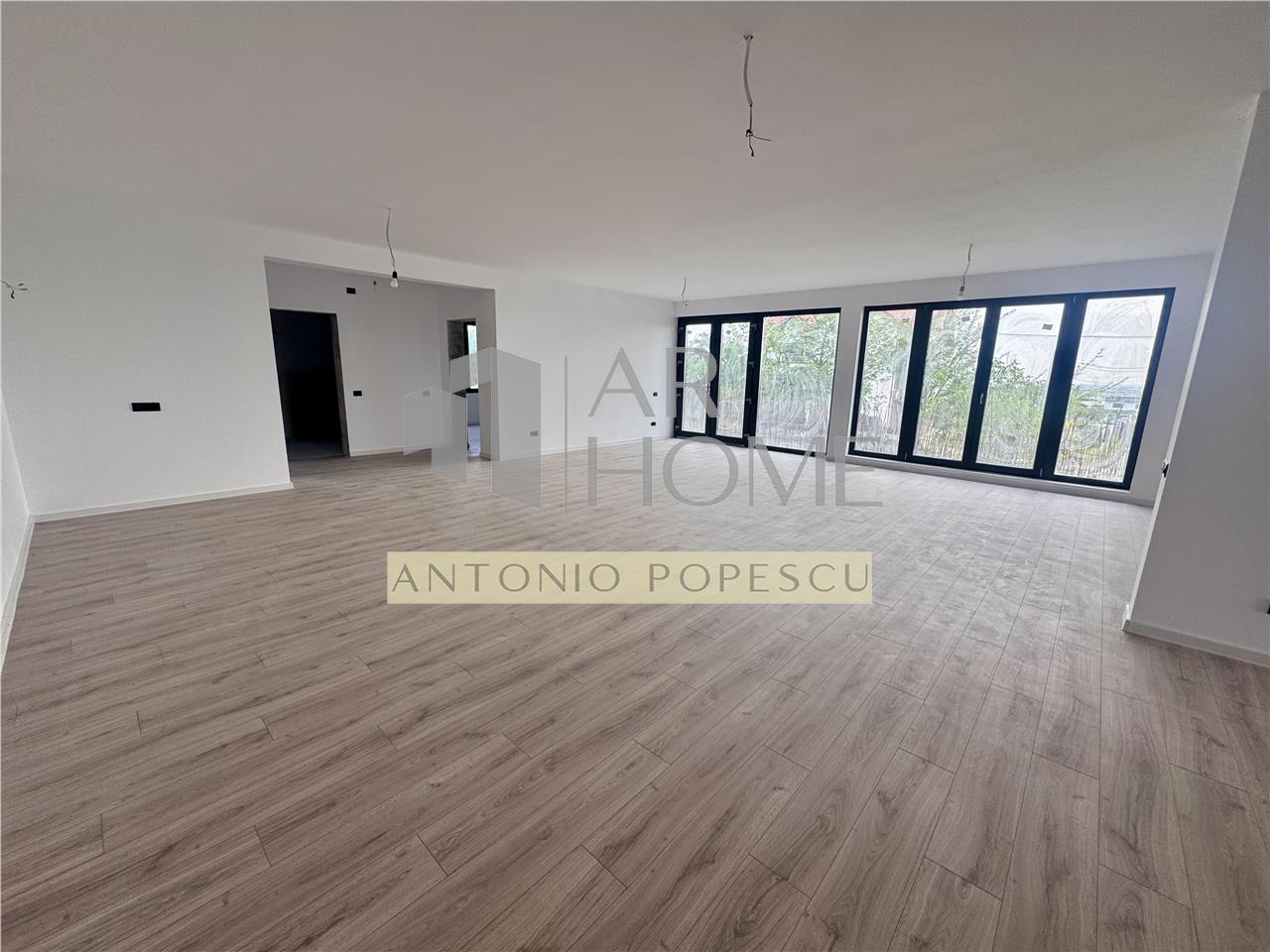Amprenta casei este de 243 mp, suprafata utila 195 mp compartimentata astfel: living, dinning, bucatarie, dormitor matrimonial cu dressing si baie proprie, dormitor 2 cu dressing propriu, baie si dormitor 3.