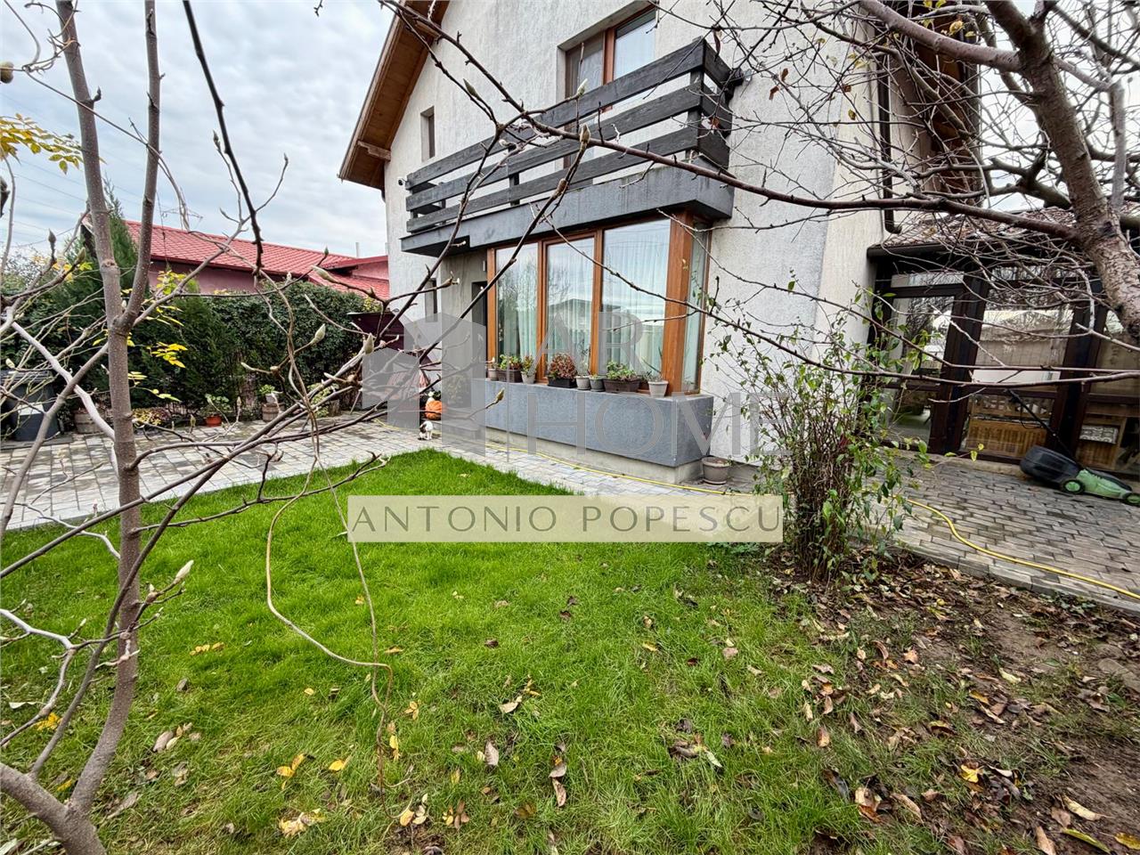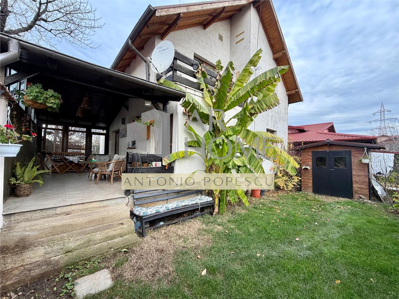 Dotari exterioare: teren imprejmuit cu gard, alee auto si pietonala pavata, gazon, terasa placata cu ceramica de exterior acoperita si inchisa in PVC, usa intrare din aluminiu, vopsea decorativa etc.