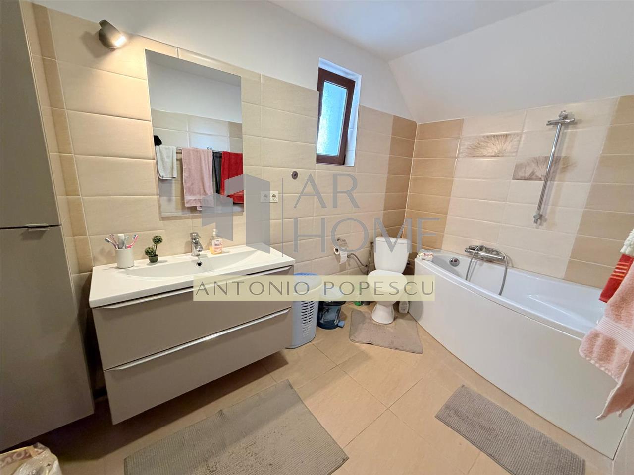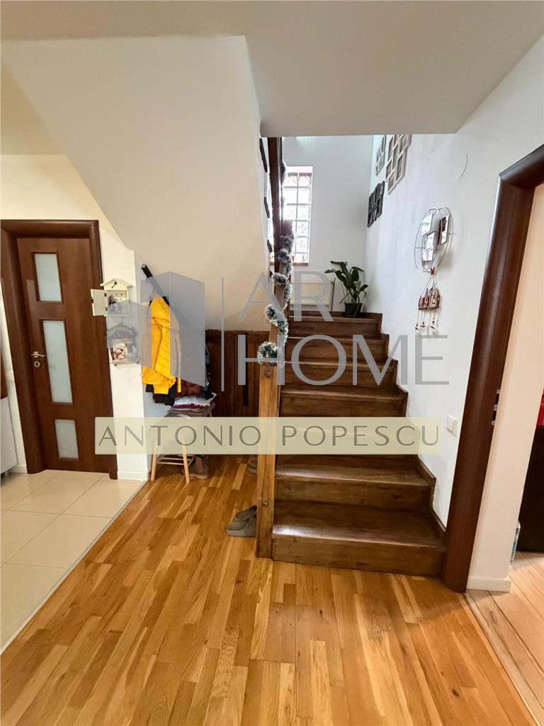 Dotari interioare: usi celulare Porta Doors, tamplarie PVC cu geam tripan, centrala termica pe gaz, calorifere din otel, instalatia termica si electrica pe cupru, ceramica Delta Studio, parchet din lemn stratificat la parter si laminat la etaj, vopsea lavabila etc.