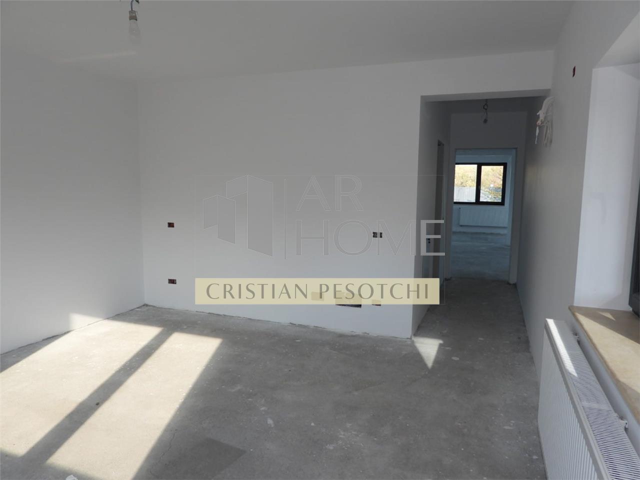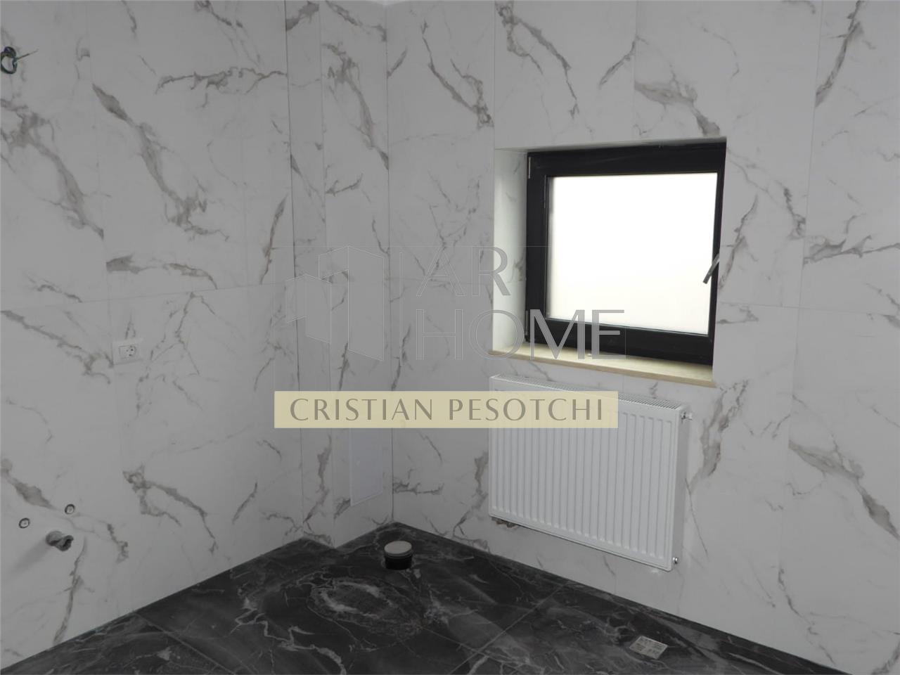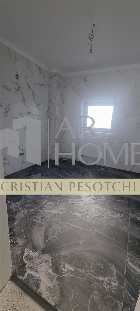 Intrarea in casa la parter se face printr-un garaj acoperit de 18mp si tot la parter avem o terasa descoperita de 25mp in spatele casei.