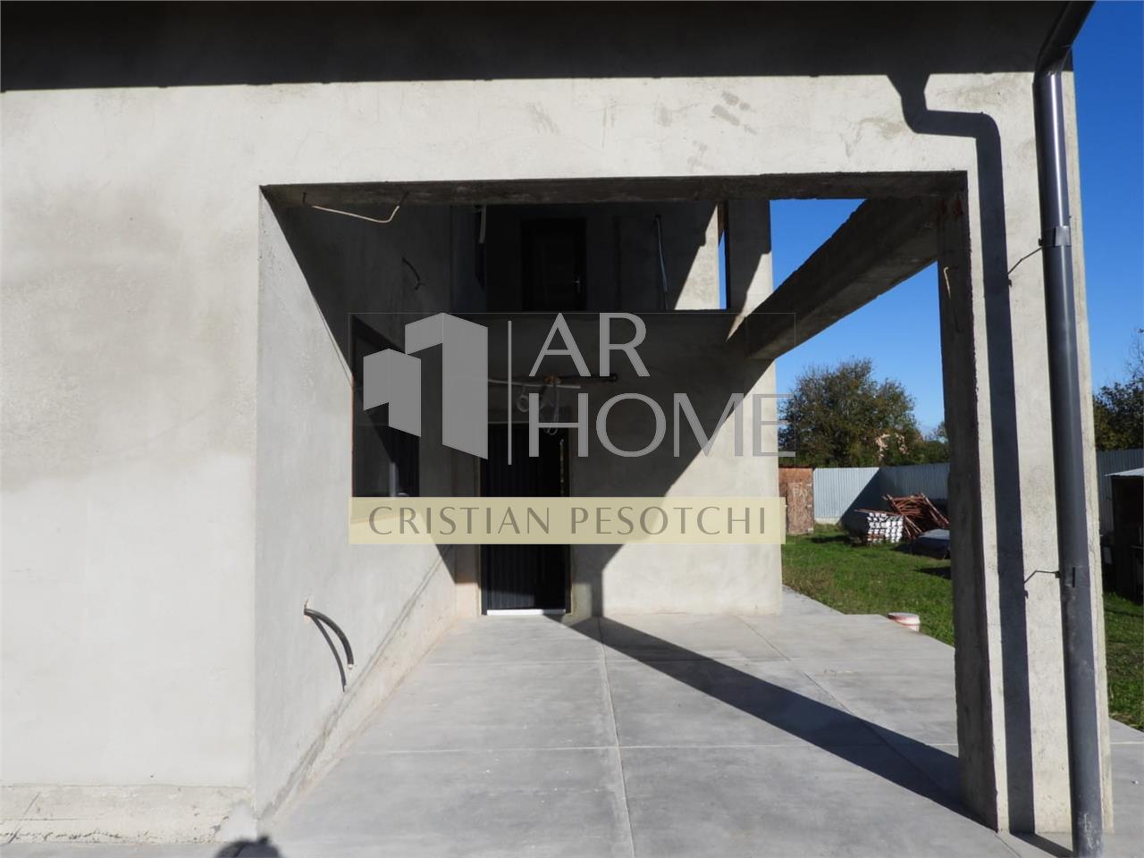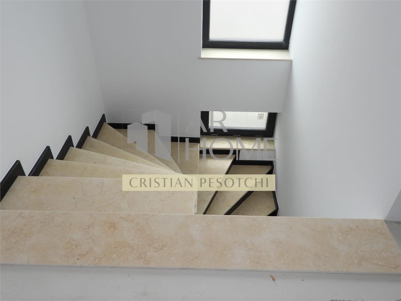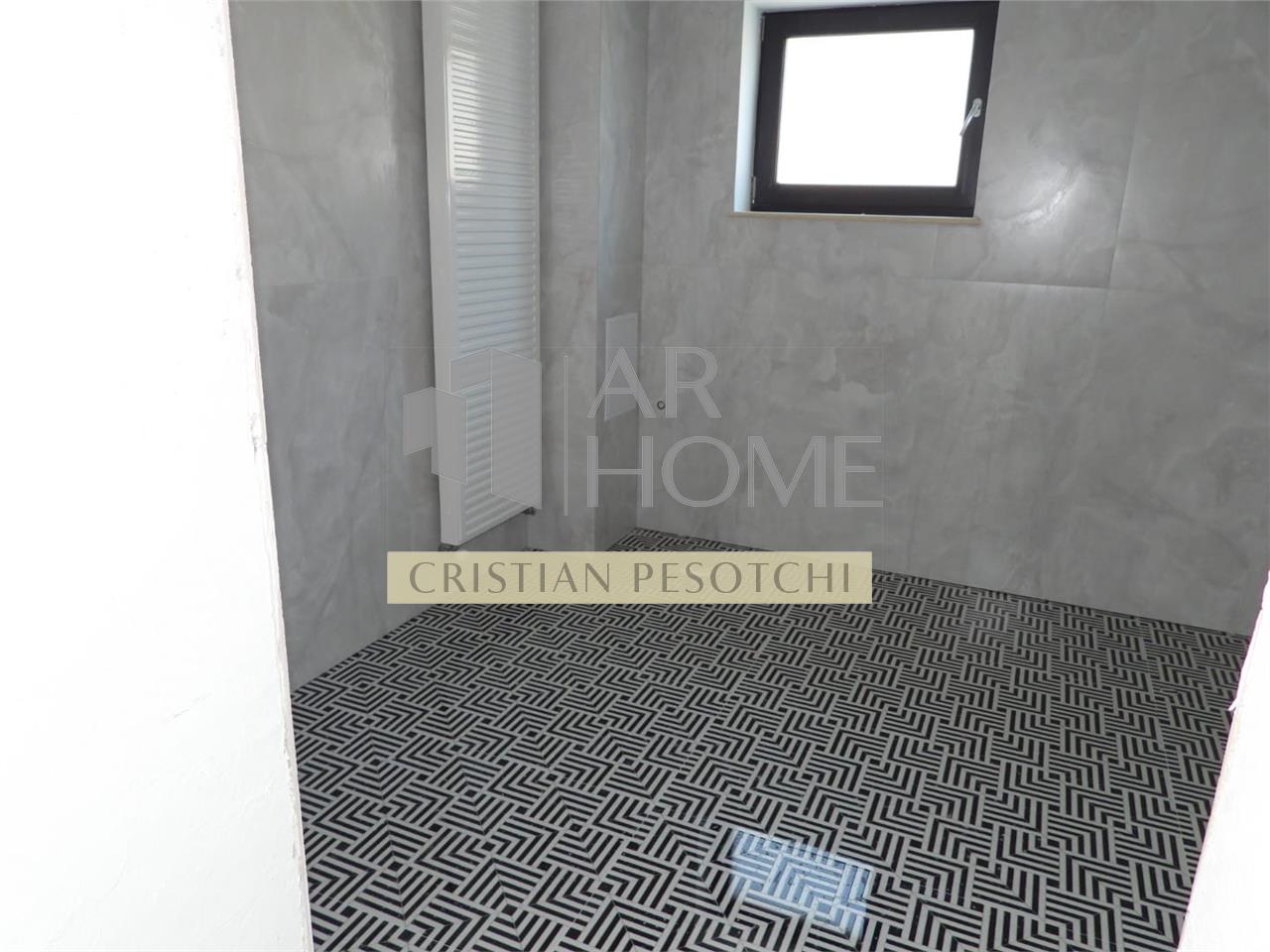 Intrarea in casa la parter se face printr-un garaj acoperit de 18mp si tot la parter avem o terasa descoperita de 25mp in spatele casei.