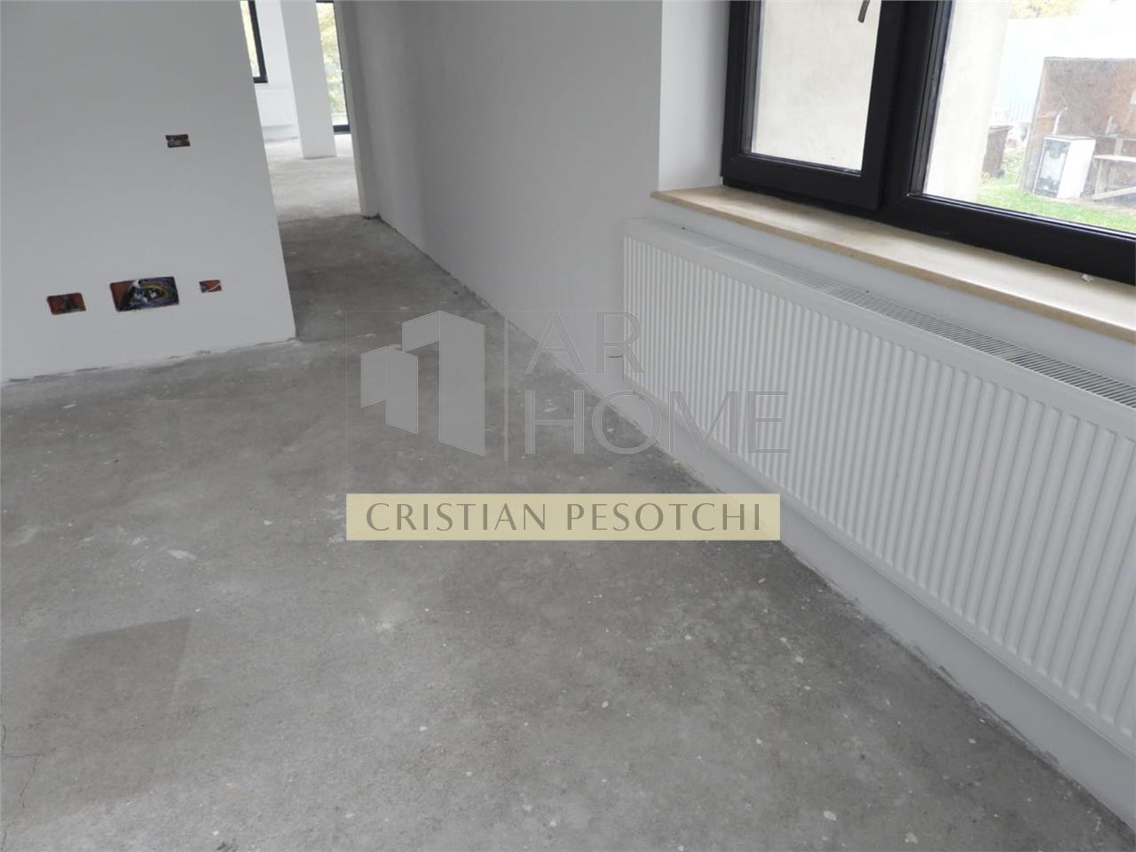 Parterul este compus din bucatarie si living generos de 55mp, hol intrare de 9 mp, dormitor matrimonial de 26 mp cu baie proprie de 9 mp, baie servici 4.2mp si camara de 7mp.