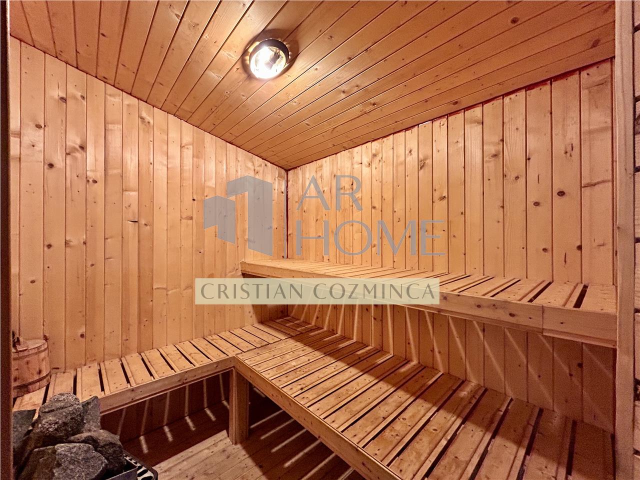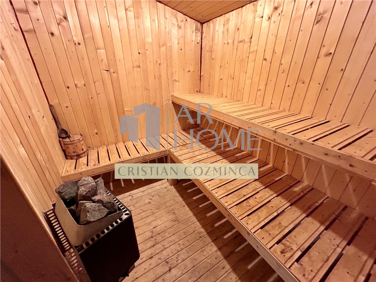 Parter: sufragerie luminoasă, dormitor, bucătărie complet mobilată și utilată, baie și o încăpere de relaxare ce are în extensie o saună cu anexă proprie (25 mp), dotată cu circuit electric separat;