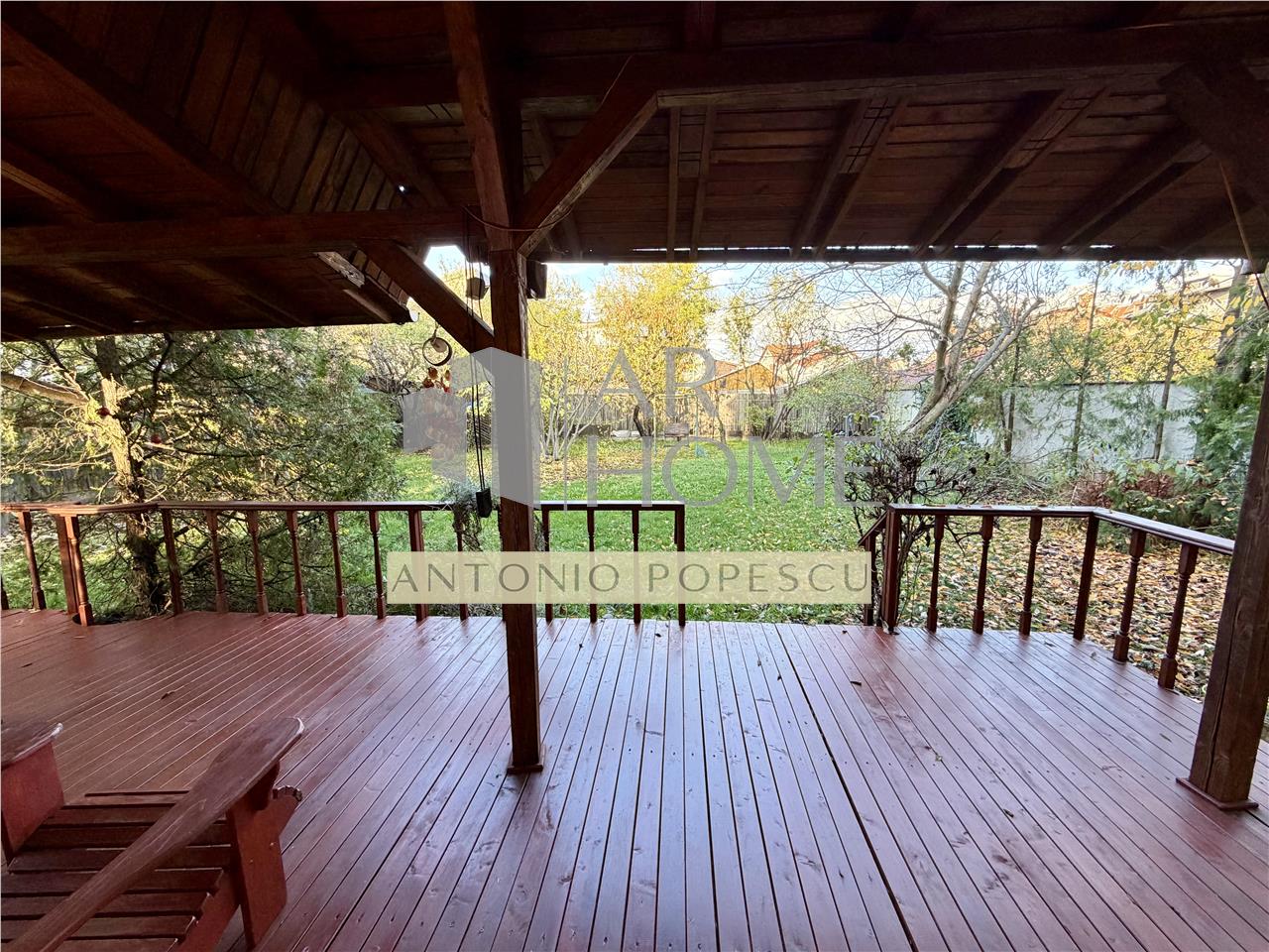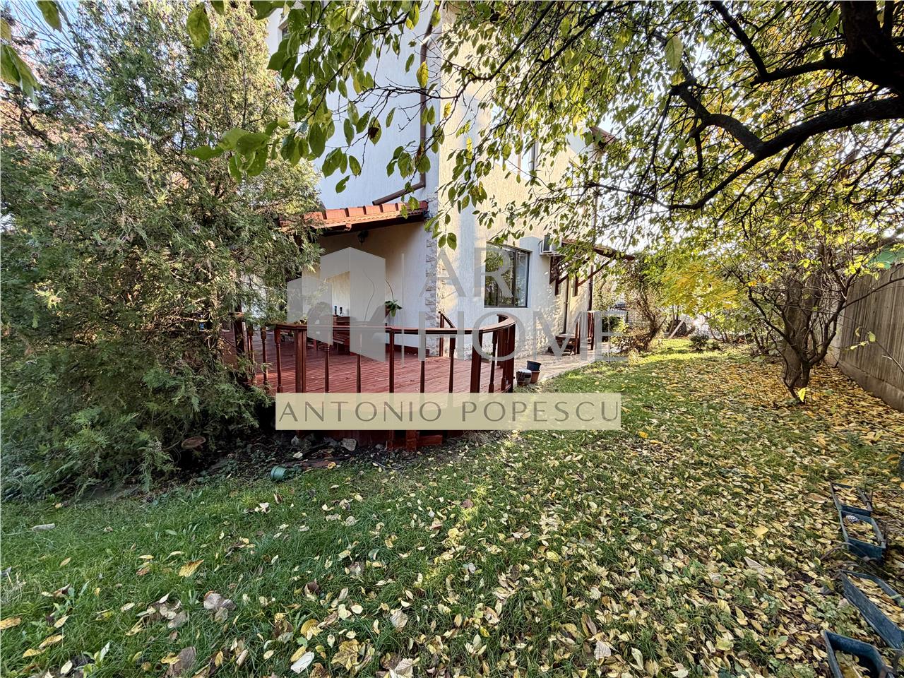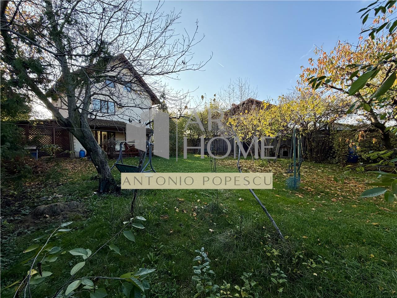 Dotari exterioare: teren imprejmuit cu gard, alei betonate cu beton amprentat, garaj dublu, terasa din lemn, gazon, pomi fructiferi, usa intrare din lemn stratificat;