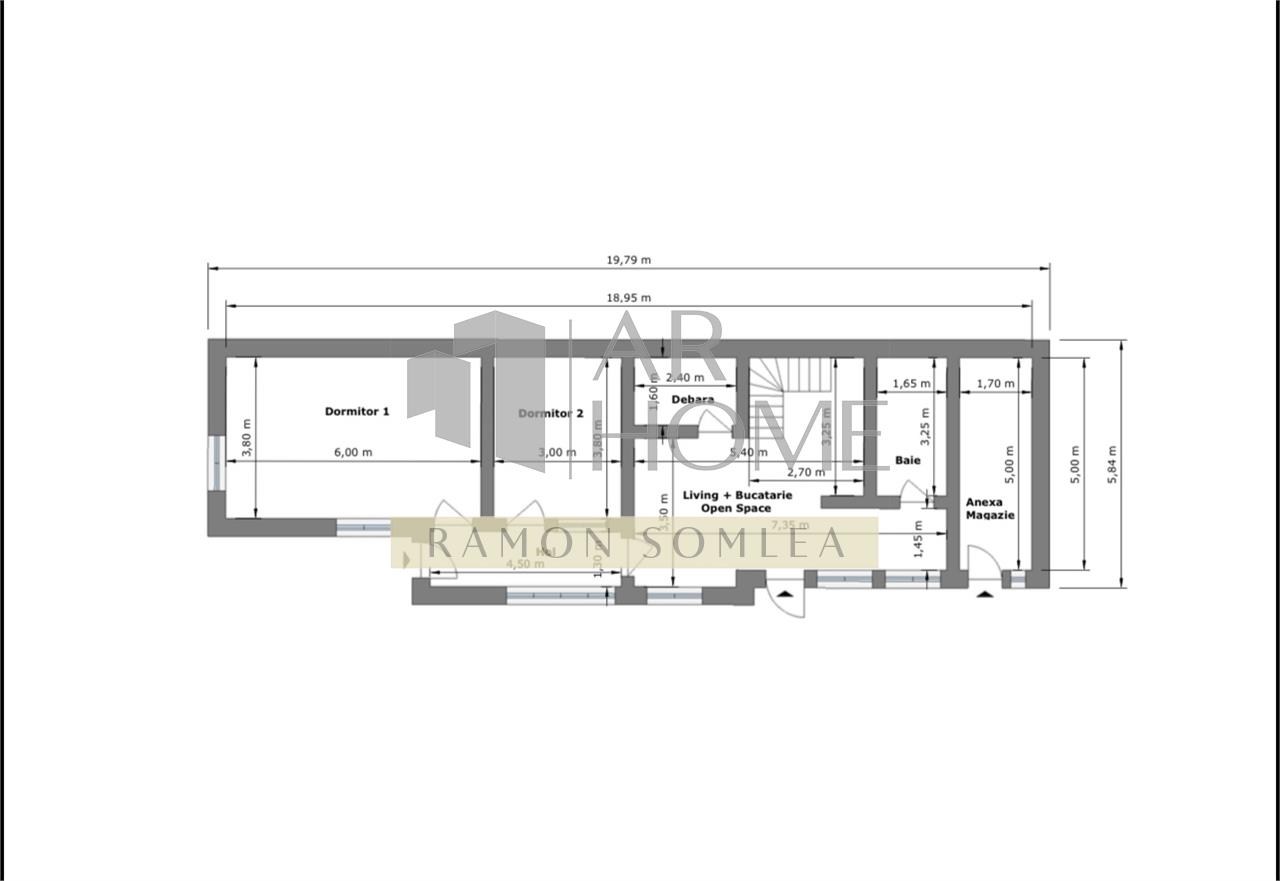 Suprafata utila de 135 m2 plus magazie 8.5 m2 si anexe pod 28 m2 iar terenul este de 183 m2 cu deschidere de 8.75ml.
