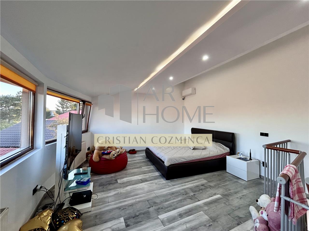 Dotari: sistem de alarma, camere de supraveghere, 2 garaje cu telecomanda, 2 fose septice, o fosa septica pentru colectarea apei de ploaie si o fosa septica pentru canalizare, incalzire in pardoseala in bucatarie, centrala termica, 2 aere conditionate, intrerupatoare lumina cu touch (nu cu buton)