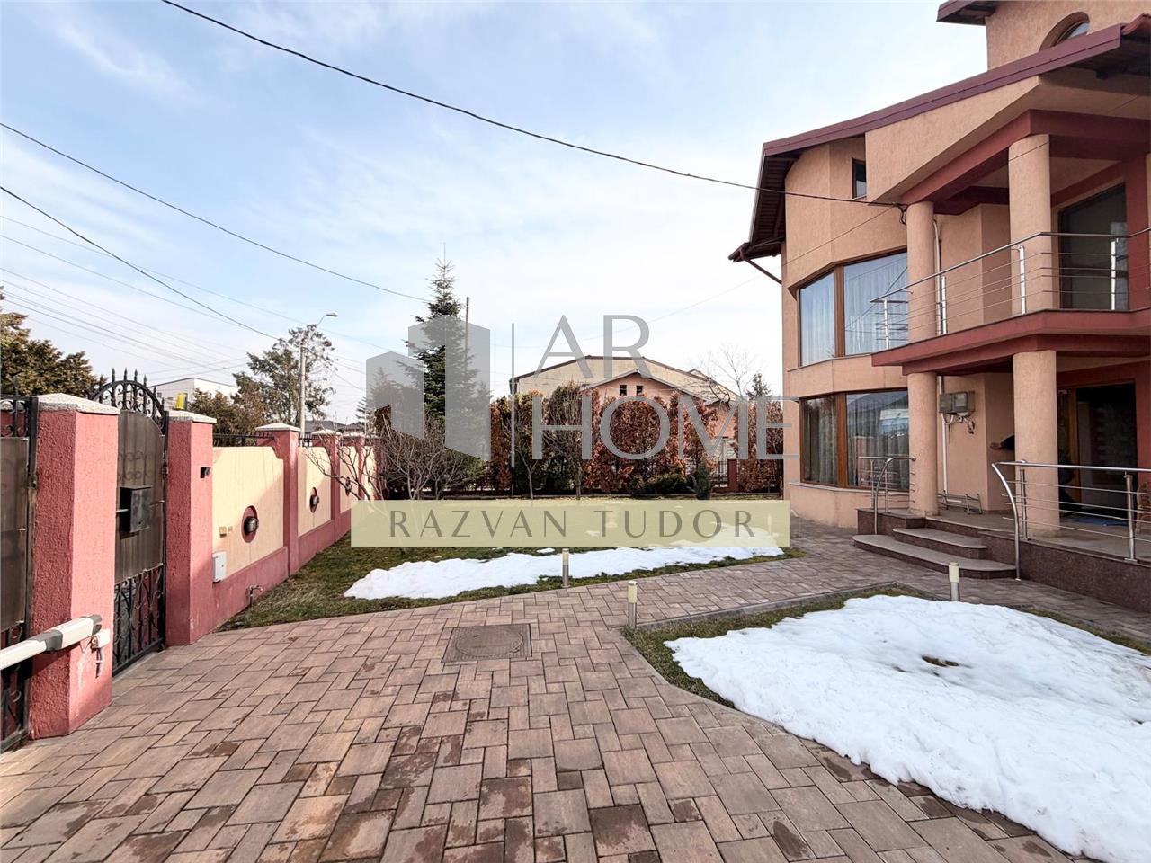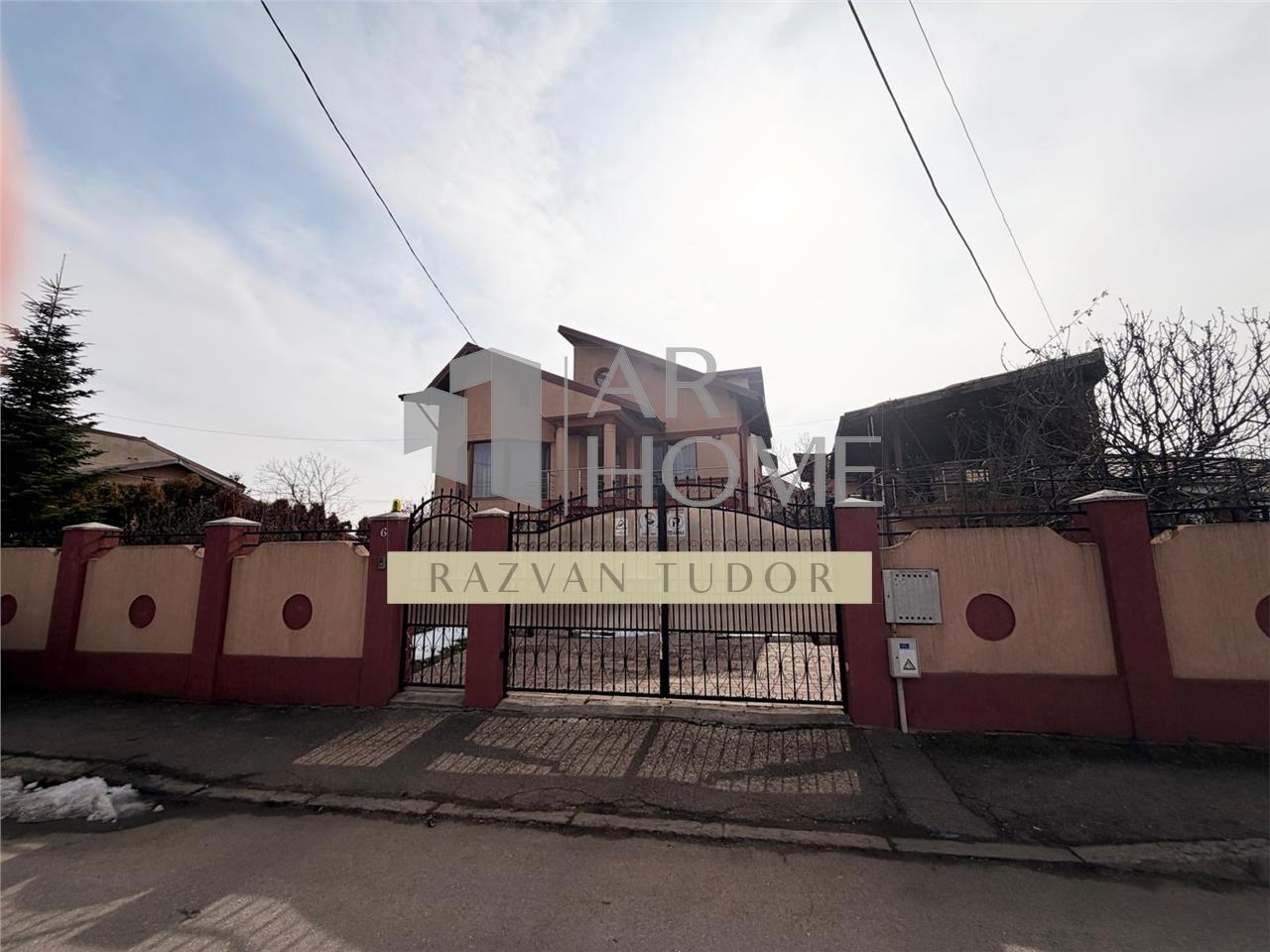 Dotari exterioare: sistem supraveghere video , porti acces auto electrice , teren imprejmuit cu gard de beton , alee auto si pietonala pavata, garaj acoperit cu usa actionata electric , camera tehnica cu centrala termica pe gaz si boiler apa incalzita cu panouri fotovoltaice , wc de serviciu , terasa de exterior acoperita din lemn pavata cu granit si cu gratar si bucatarie de vara , iarba tip gazon , aspersoare , gard verde , etc.
