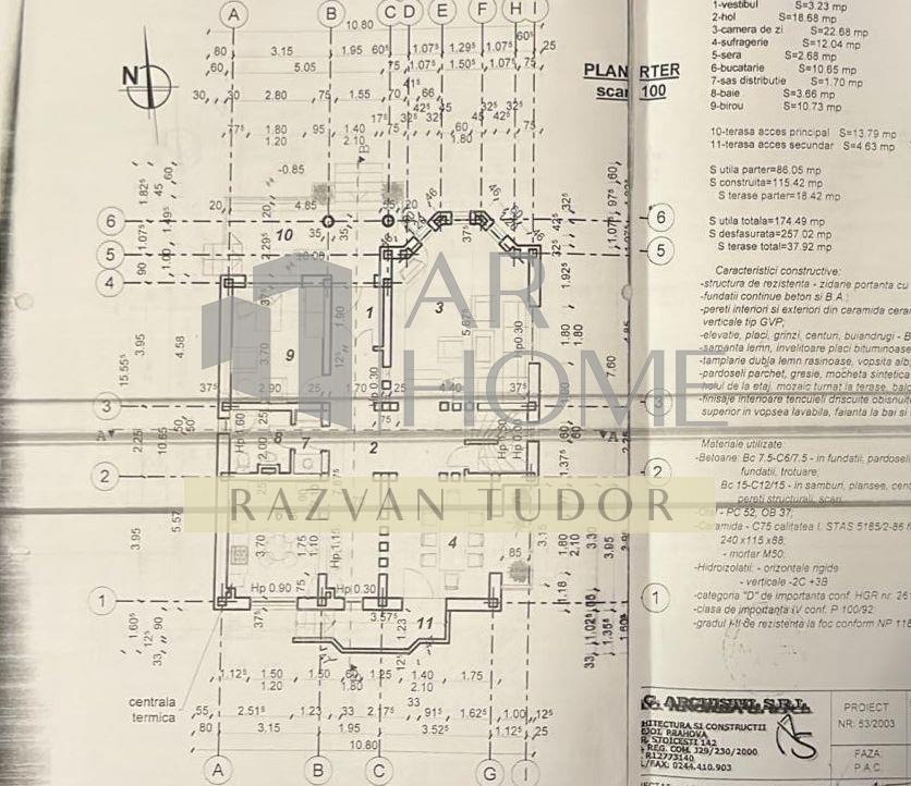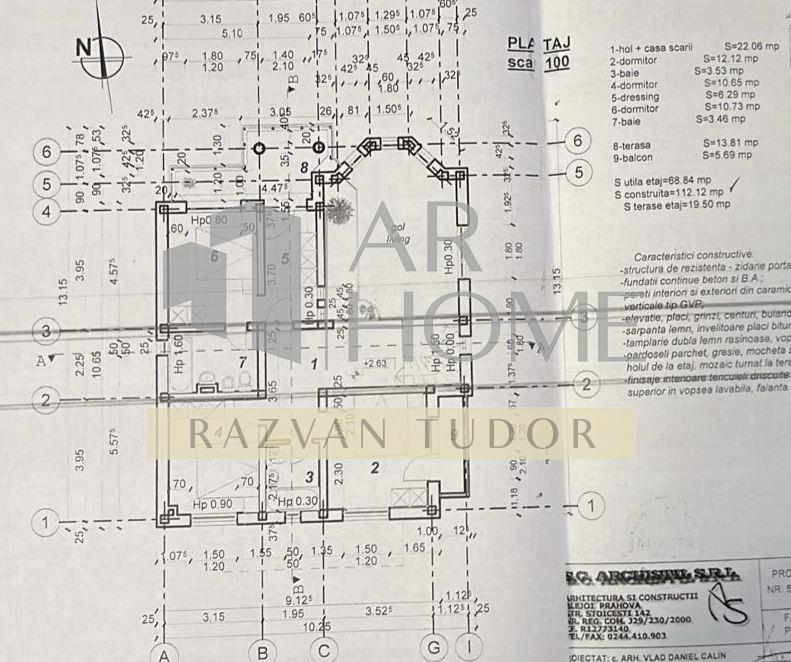 Imobilul este construit in anul 2010 cu fundatie de beton armat , izolat termic si tencuit la exterior cu polistiren extrudat si hidroizolatie, structura pe cadre de beton, peretii din caramida (25cm grosime) , placa de beton intre parter si etaj , cat si intre etaj si mansarda.