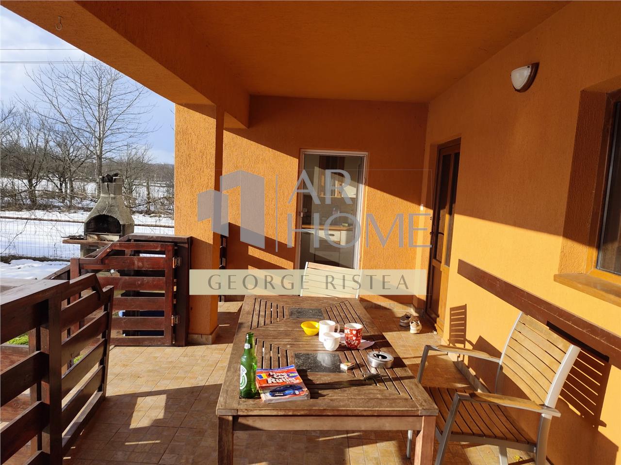 Casa cu fundatie de beton, peretii din bca, izolatie exterioara polistiren, acoperis din tabla tip lindab si anexe gospodaresti.