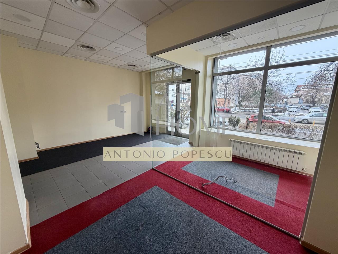 Are o suprafata utila de 65 mp si dispune de: vitrina stradala, tamplarie din aluminiu cu geam termopan, centrala termica proprie, calorifere din otel, instalatia termica pe cupru, vopsea lavabila, gresie, mocheta de trafic intens etc.
