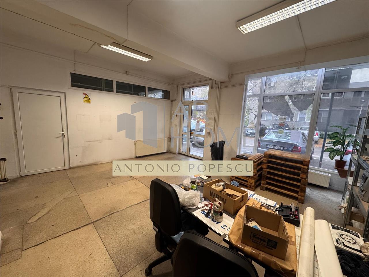 Are o suprafata construita de 85,85 mp, suprafata utila 76,3 mp si dispune de: vitrina 5,13 mp, tamplarie PVC cu geam termopan, centrala termica proprie, calorifere din otel, 2 grupuri sanitare, open space 50 mp, spatiu depozitare/ birou 9,62 mp, hol 6,76 mp, gr. sanitare 4,81 mp.