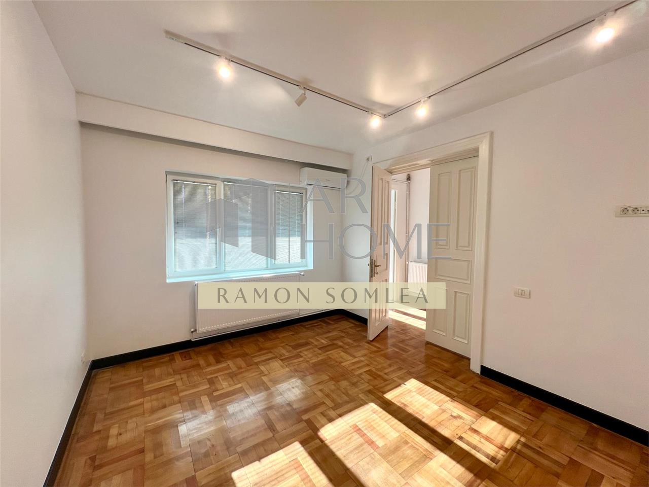 Are o suprafata utila de 100 mp recent renovata si igienizata , este compusa din 2 holuri , 3 camere 1 bucatarie mobilata, 1 baie, cameră tehnică,depozitare si dispune de: tamplarie PVC cu geam termopan, sine cu spoturi, gresie, faianta, parchet din lemn masiv, vopsea lavabila , centrala proprie, 2 aparate de aer conditionat, camere de supraveghere.
