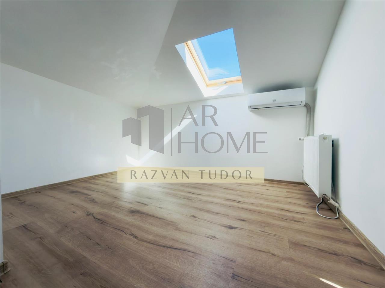 Dispune de: tamplarie PVC cu geam termopan si Veluxuri , parchet laminat , vopsea lavabila alba , centrala proprie , plita pe gaz aer conditionat in fiecare camera etc.
